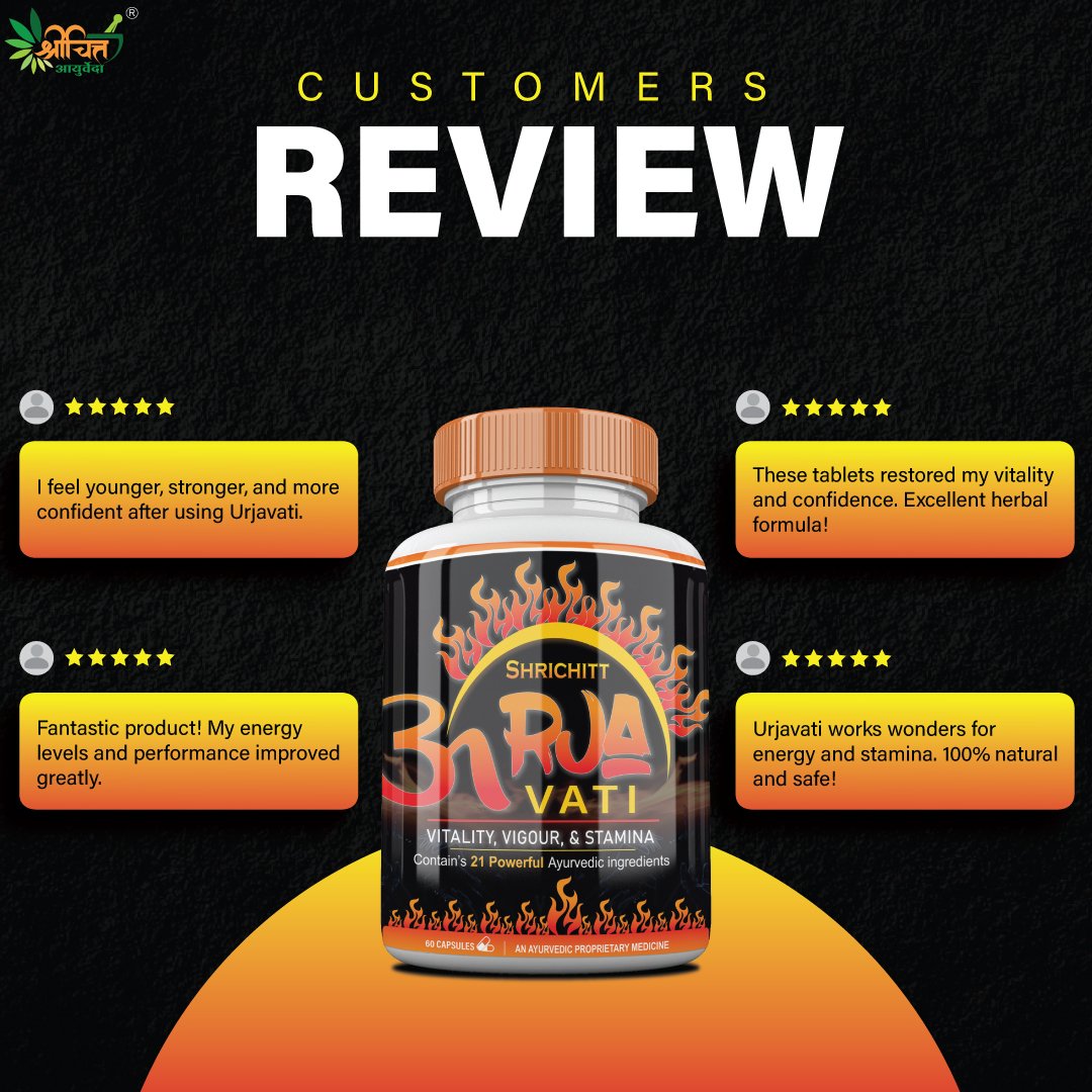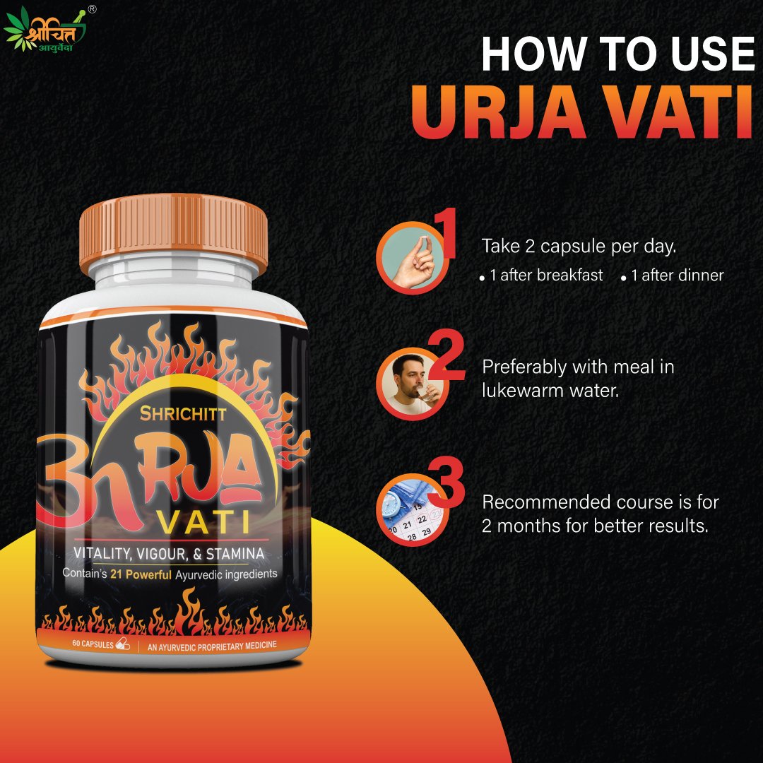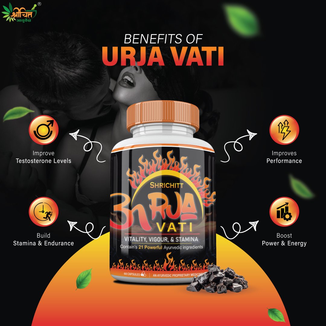 Urja Vati is a natural men’s health supplement formulated to support libido, stamina, and testosterone levels. Its unique blend of herbal ingredients works by enhancing blood flow, balancing hormones, and boosting overall male vitality and performance.