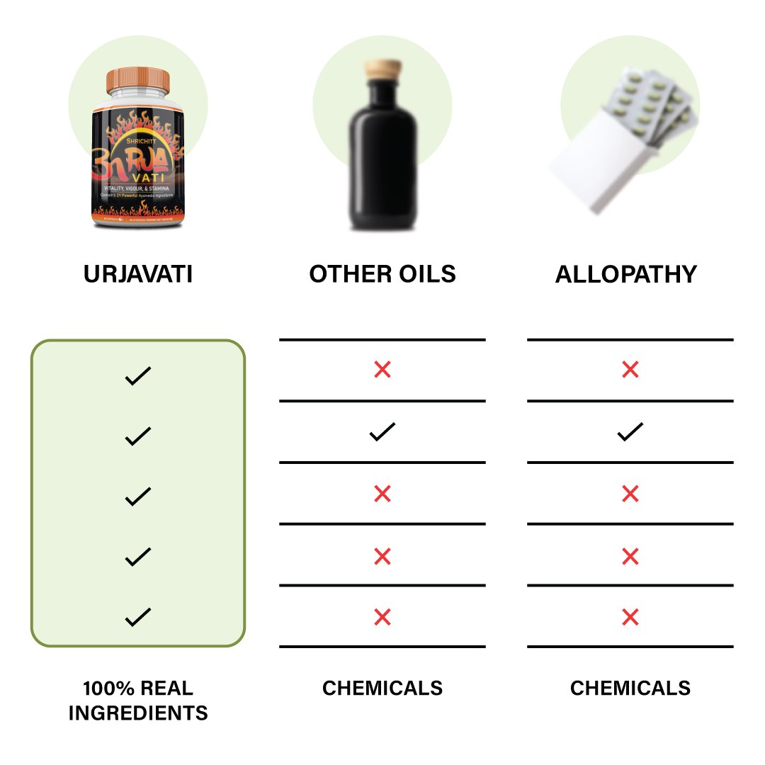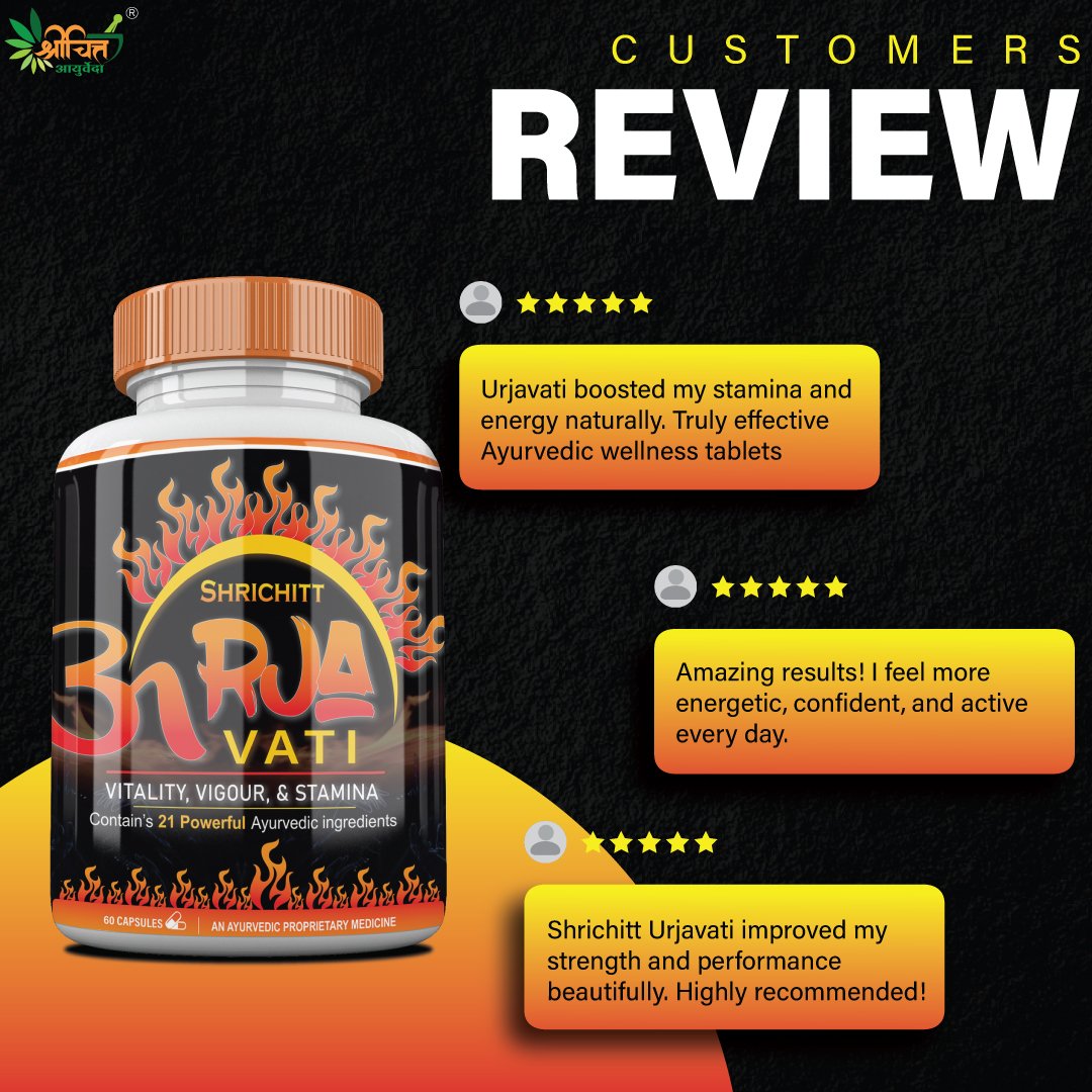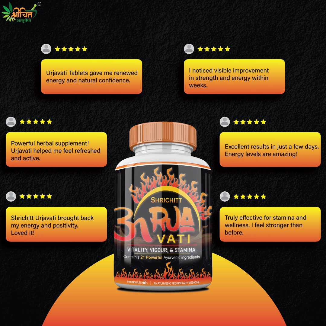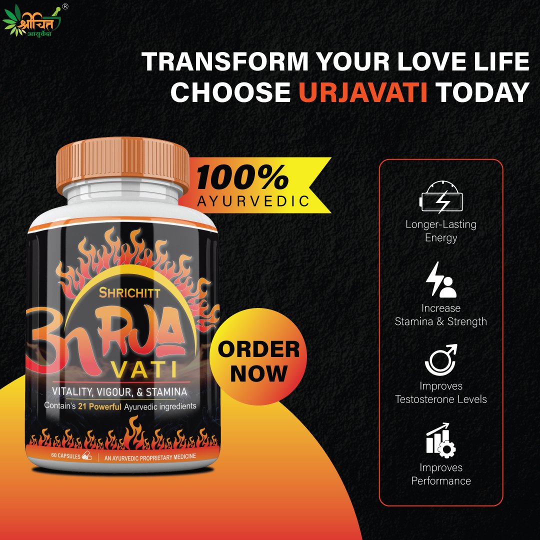 Urja Vati is a natural men’s health supplement formulated to support libido, stamina, and testosterone levels. Its unique blend of herbal ingredients works by enhancing blood flow, balancing hormones, and boosting overall male vitality and performance.